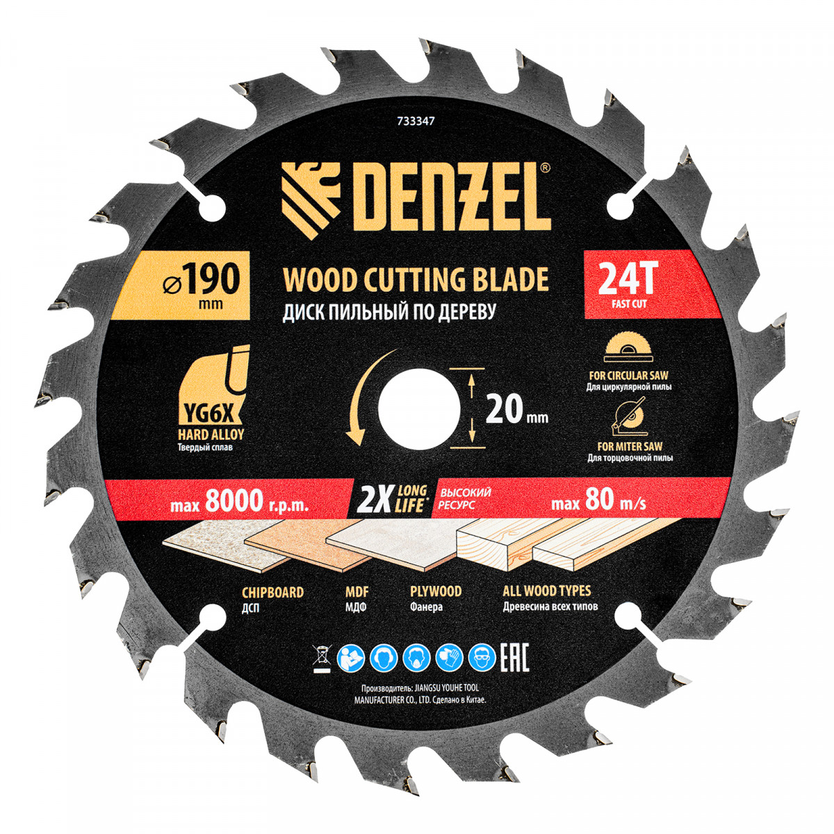 Пильный диск Denzel 733347 диаметром 190 x 20 мм, с 24 зубьями, предназначен для продольного и поперечного распила твердой и мягкой древесины, фанеры, МДФ, ДСП. 24 зуба типа ATB с режущими пластинами оптимальной геометрии обеспечивают быстрый рез. Режущие пластины из твердого сплава YG6X сохраняют рабочие свойства при интенсивном использовании. Диск устанавливается на циркулярную, торцовочную пилу или на распиловочный станок. В комплект поставки входит переходное кольцо с 20 на 16 мм, что позволяет изменить посадочный размер и расширяет возможности использования диска.