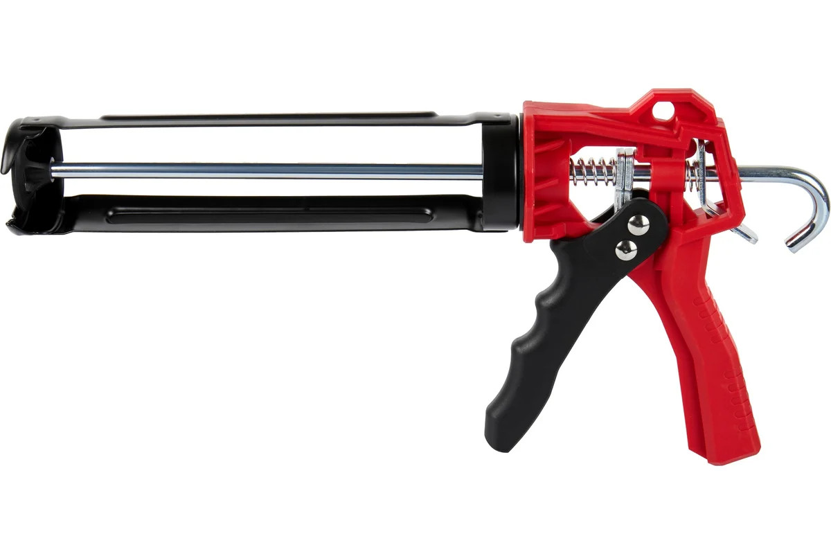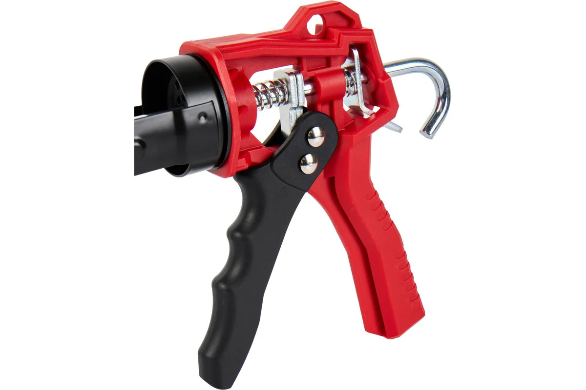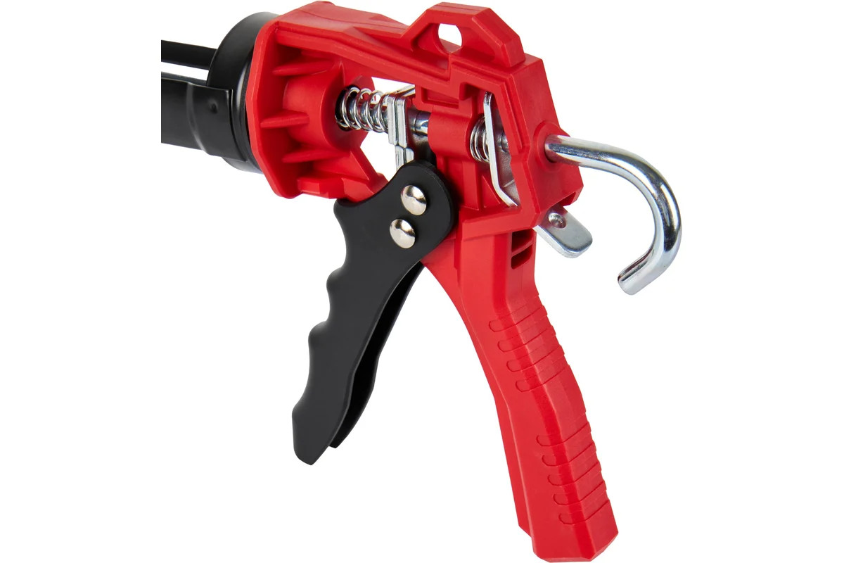Пистолет с поворотным на 360° держателем и усилием на штоке до 1350 Н (135 кг) используется для выдавливания из тубы герметизирующих или клеящих составов.