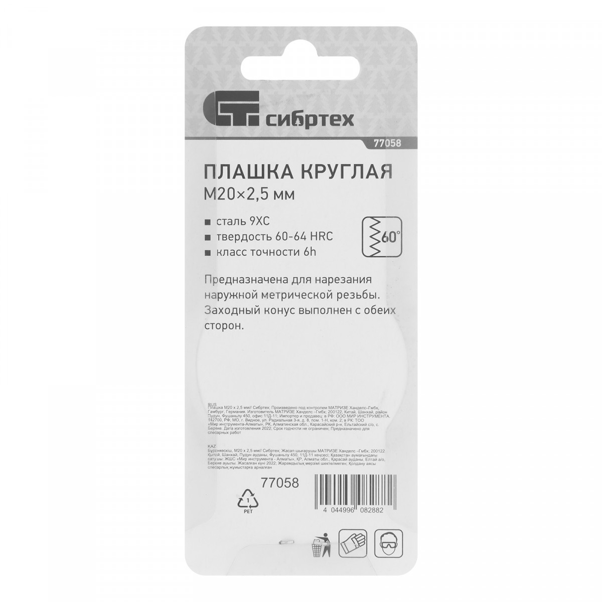 Плашка Сибртех 77058 типоразмера М20 х 2,5 мм предназначена для нарезания внешней метрической резьбы. Проста в использовании, поэтому пригодится даже начинающему мастеру для проведения слесарных и монтажных работ в быту. Цельная конструкция плашки позволяет полностью захватить деталь и нарезать высокоточную резьбу за один проход.