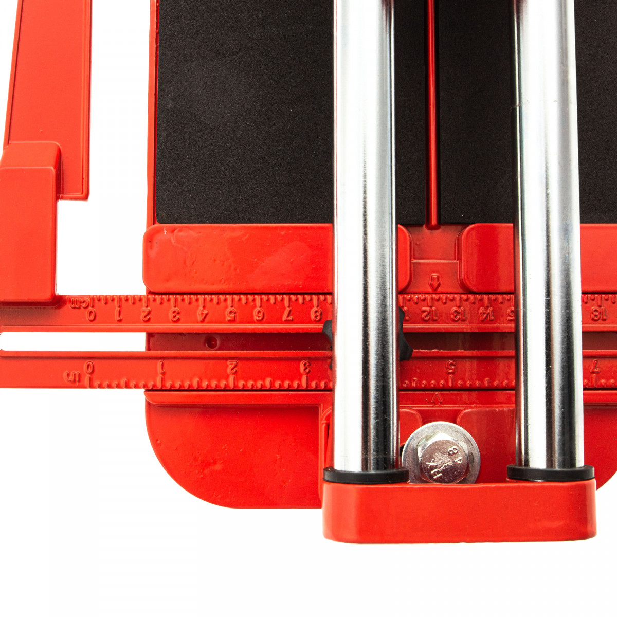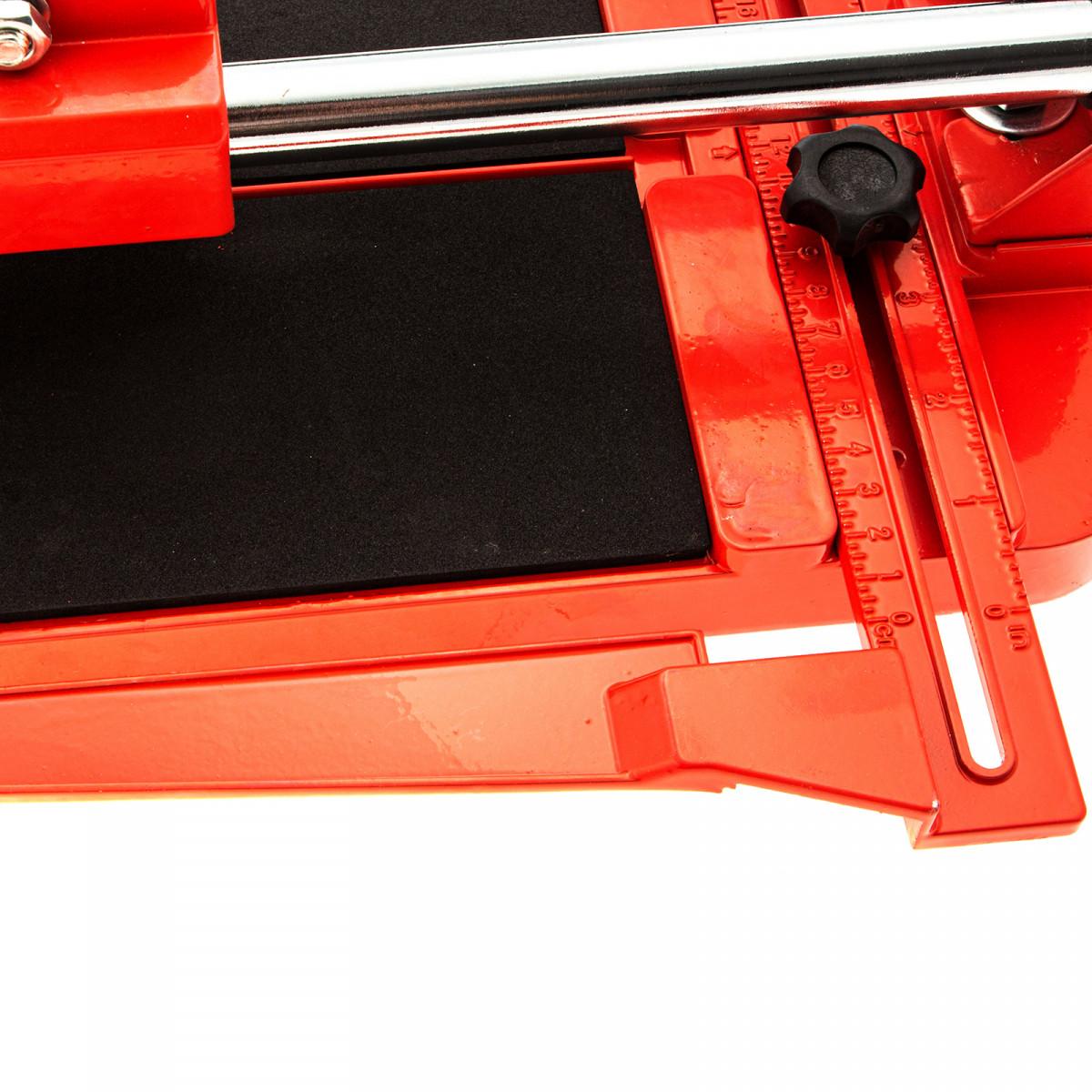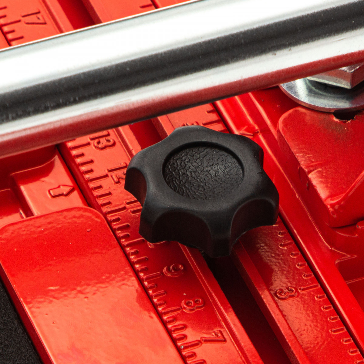 - Устойчивое основание и неподвижность плитки — плиткорез снабжен цельнолитой станиной из алюминиево-магниевого сплава с обрезиненной поверхностью, а также мягкими амортизирующими накладками.