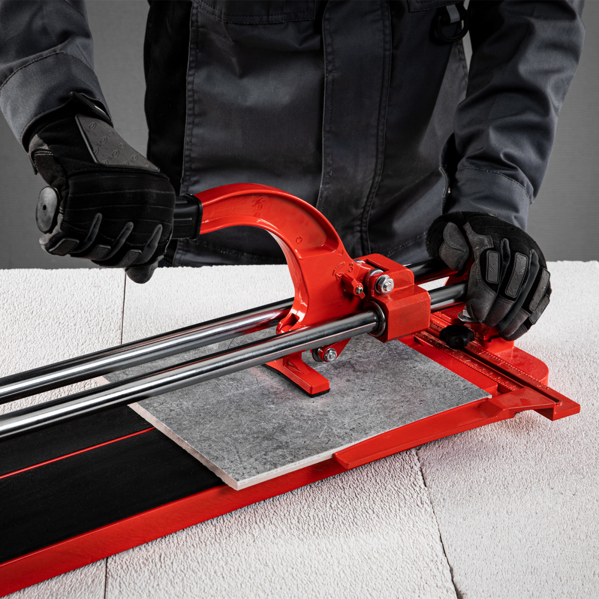 Каретка на подшипниках обеспечивает плавный и точный ход при резке плитки.