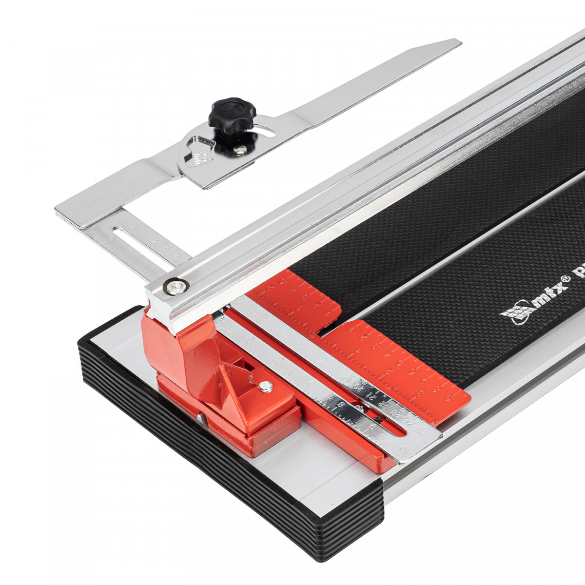 Рельсовый плиткорез MTX 87687 способен резать плитку длиной до 500 мм и толщиной до 16 мм для придания ей необходимых размеров. Мощный разделитель справляется с резкой не только керамической, но и керамогранитной плитки. Продуманная конструкция позволяет производить разлом в любой точке поверхности плитки. Инструмент используется во время проведения облицовочных работ.
