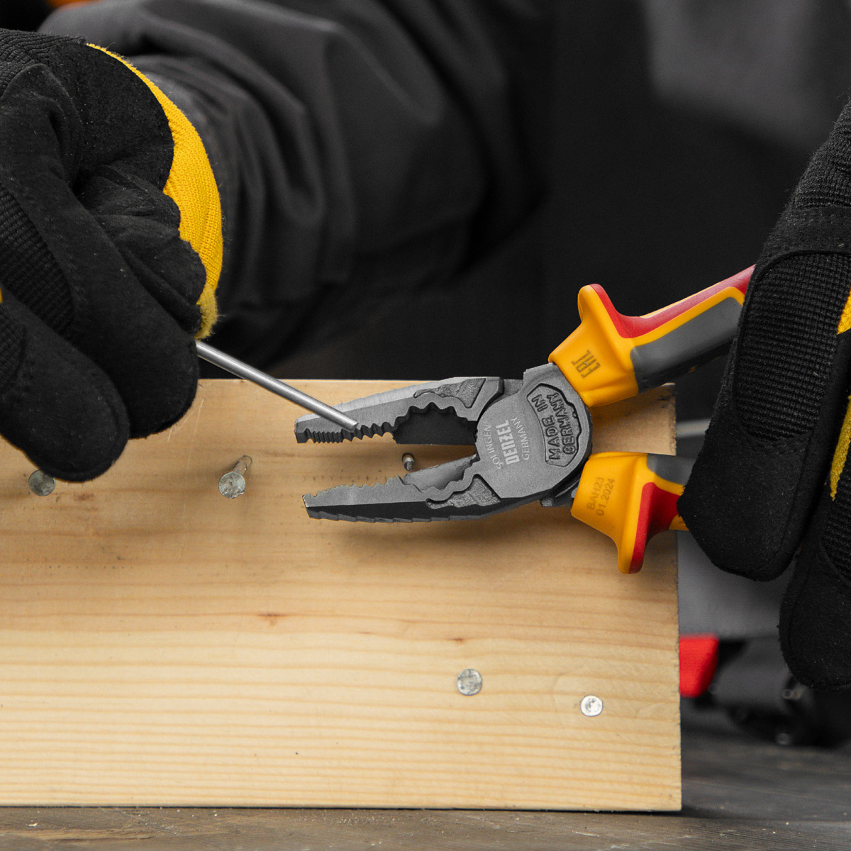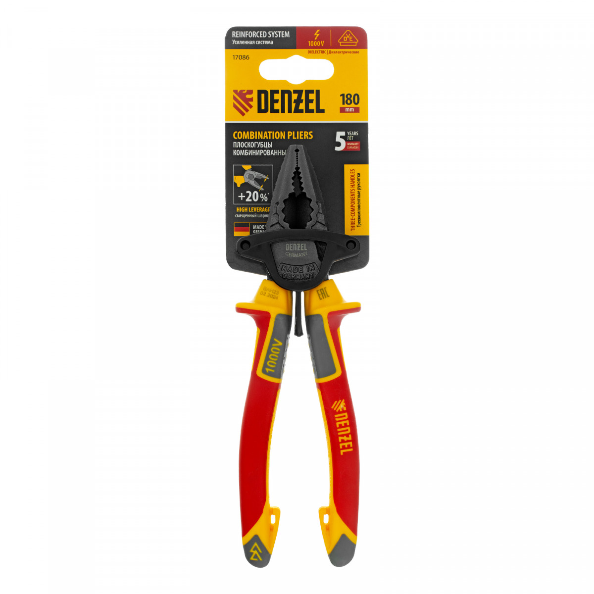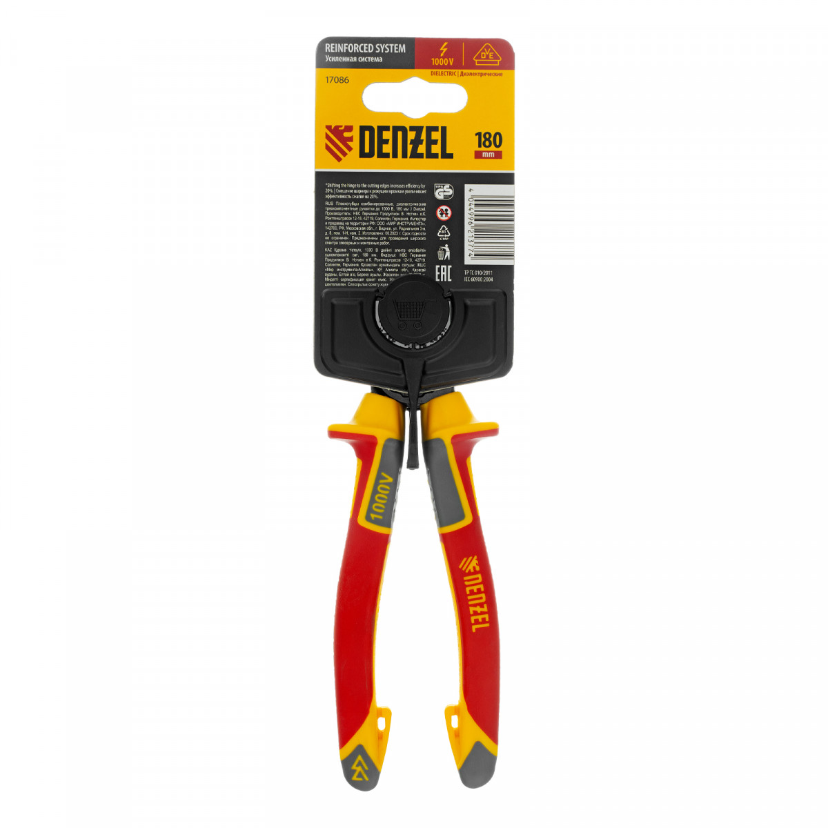 Плоскогубцы комбинированные, диэлектрические трехкомпонентные рукоятки до 1000 В, 180 мм Denzel