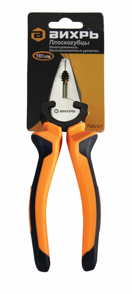 Плоскогубцы 180мм никелированные, двухкомпонентные рукоятки Вихрь 73/6/3/7 - удобный инструмент, при помощи которого можно выполнять большое количество разнообразных операций.Изделие покрыто никелем для защиты от коррозии.