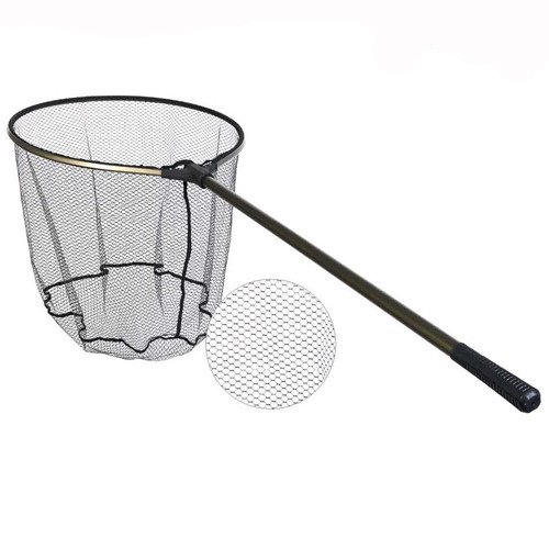 Складной подсачек с мощной рукояткой и сачком из прорезиненного полиэстера. Сетка из такого материала меньше травмирует рыбу и сводит к минимуму запутывание в ней крючков. Оснащён оригинальной системой фиксации ручки в рабочем положении с помощью ассиметрика.