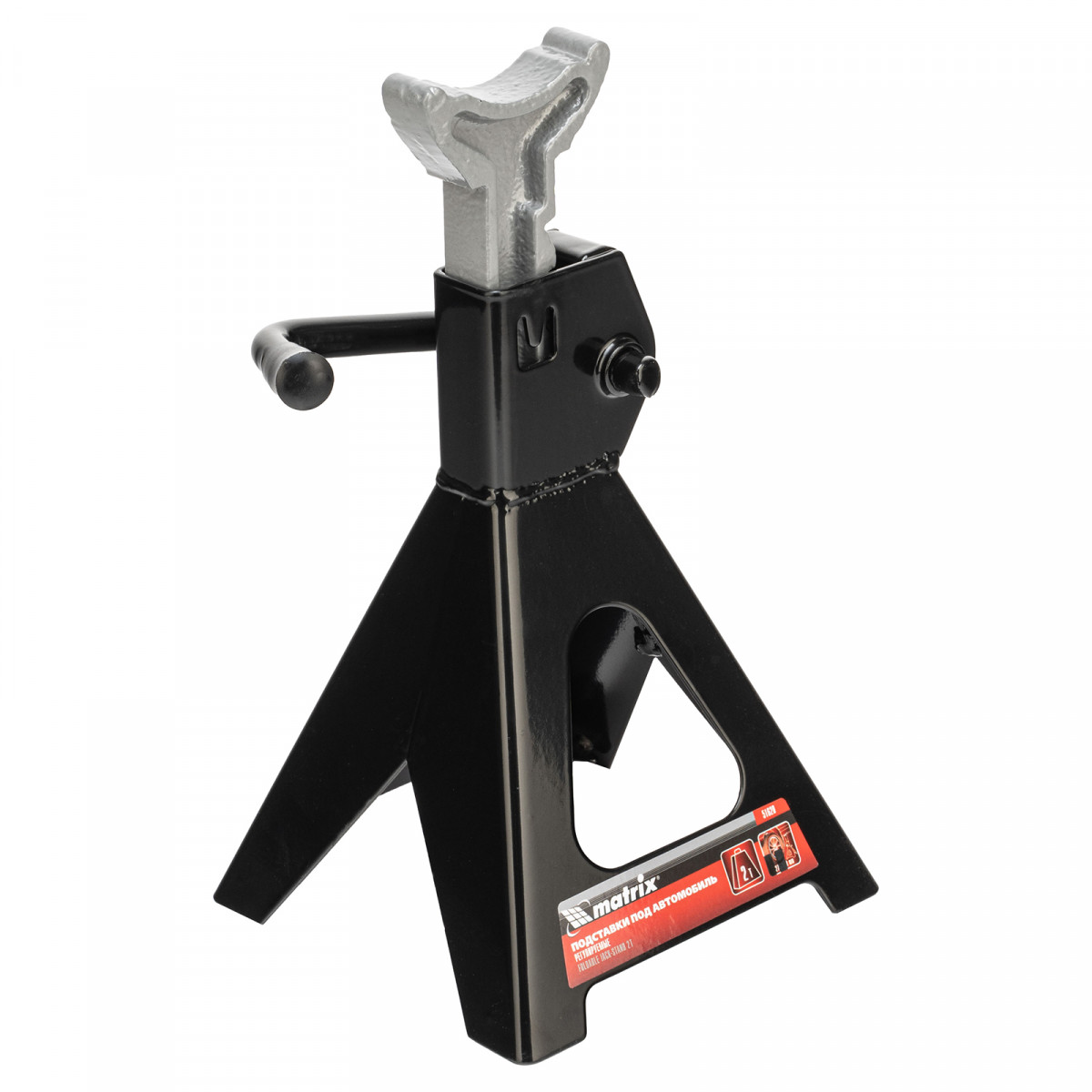 Регулируемые подставки под автомобиль Matrix 51620 с несущей способностью 2 т, 2 шт. в комплекте, удерживают груз на высоте 275-420 мм. Их используют в качестве средства дополнительной фиксации и страховки легкового автомобиля, поднятого на подъемнике или домкрате. Конструкцией предусмотрен зубчатый механизм, надежно удерживающий шток в выдвинутом положении. Подставки пригодятся в гараже или автосервисе во время проведения ремонтных работ.