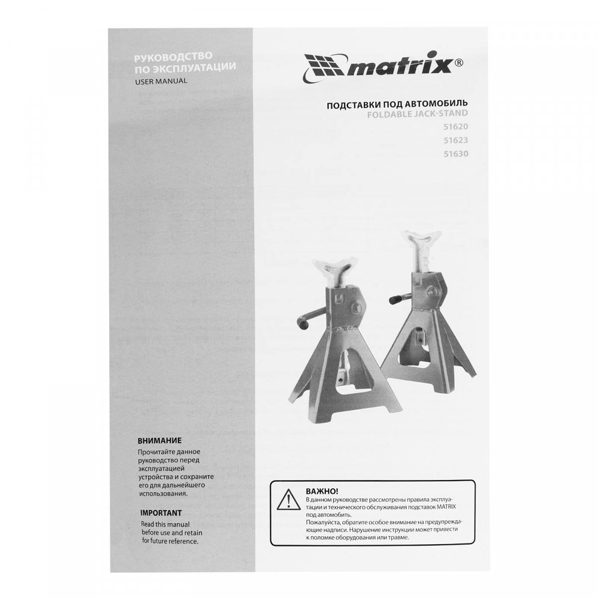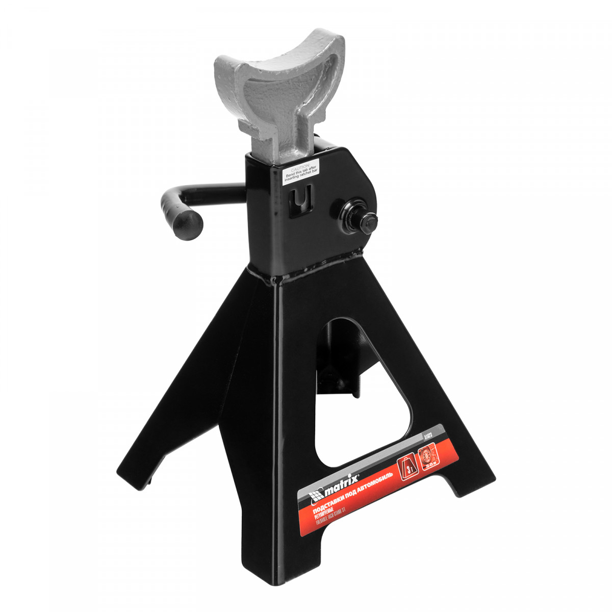 Регулируемые подставки под автомобиль Matrix 51623 с несущей способностью 3 т, 2 шт. в комплекте, удерживают груз на высоте 295-425 мм. Их используют в качестве средства дополнительной фиксации и страховки легкового автомобиля, поднятого на подъемнике или домкрате. Конструкцией предусмотрен зубчатый механизм, надежно удерживающий шток в выдвинутом положении. Подставки пригодятся в гараже или автосервисе во время проведения ремонтных работ.