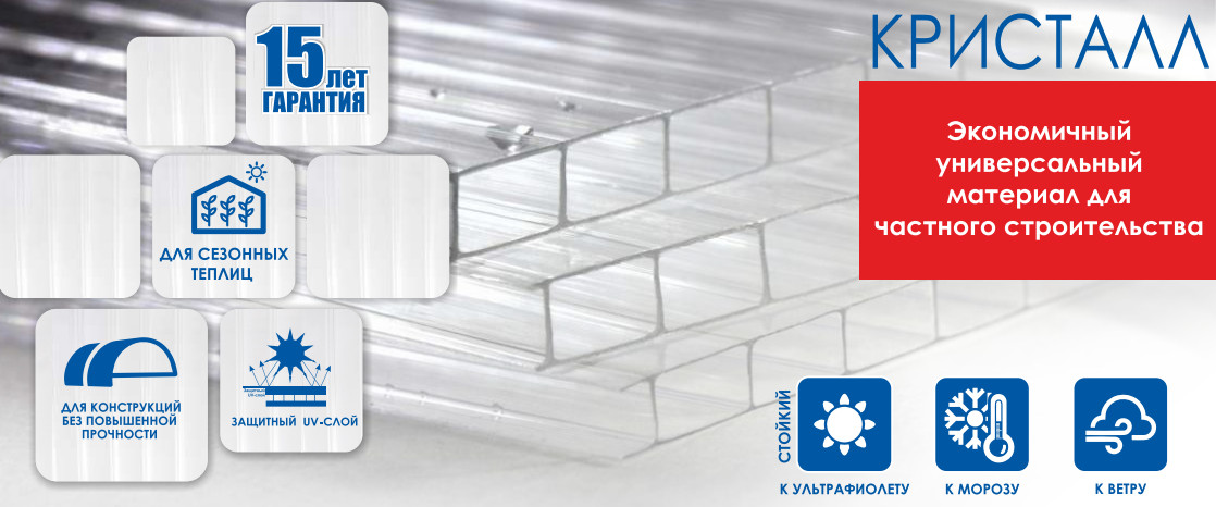 - Защита от ультрафиолетового излучения (специальный защитный слой, нанесенный на наружную поверхность листов, препятствует проникновению наиболее вредных для внутреннего помещения УФ излучений).