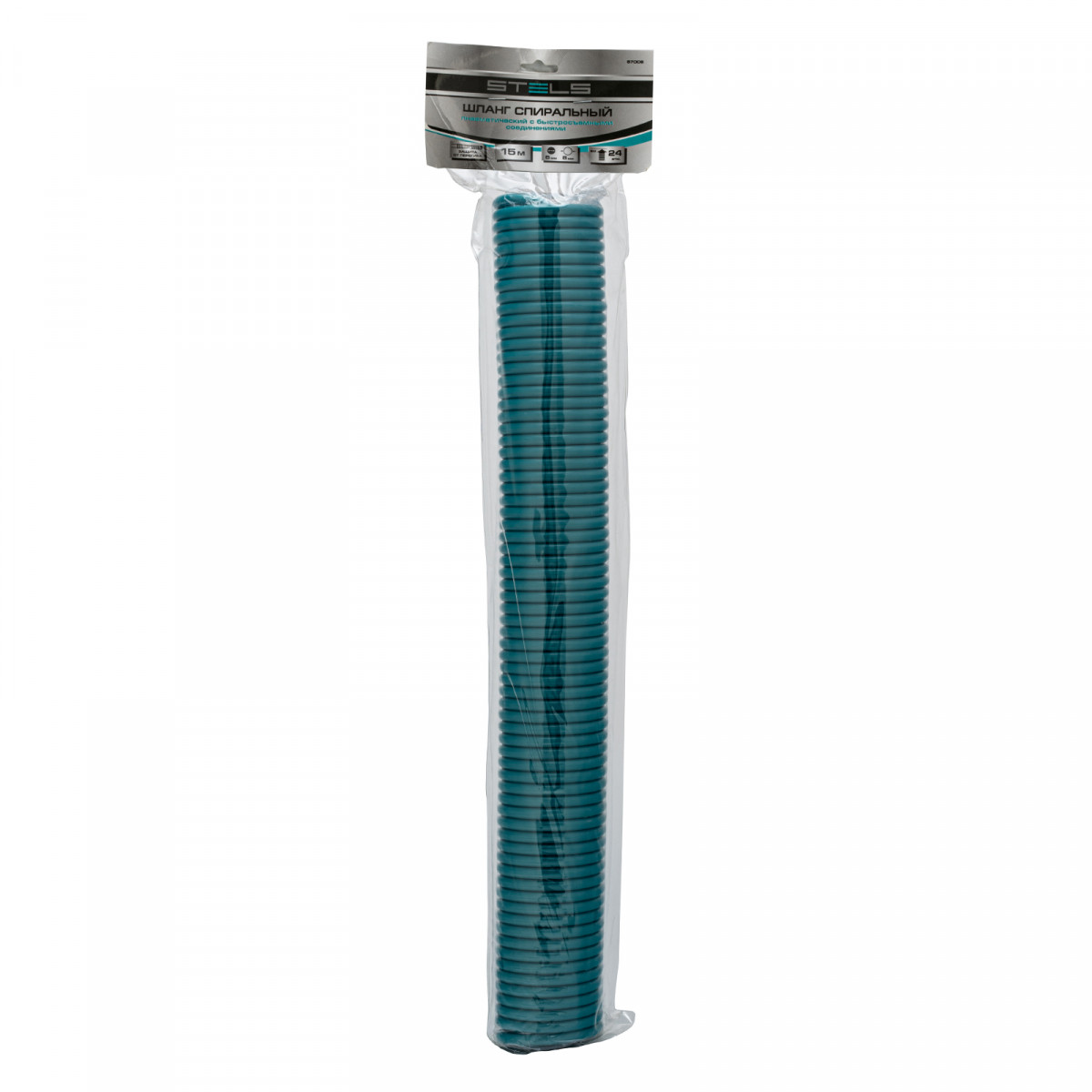 Полиуретановый спиральный шланг профессиональный BASF, 15 м, с быстросъемными соединением Stels