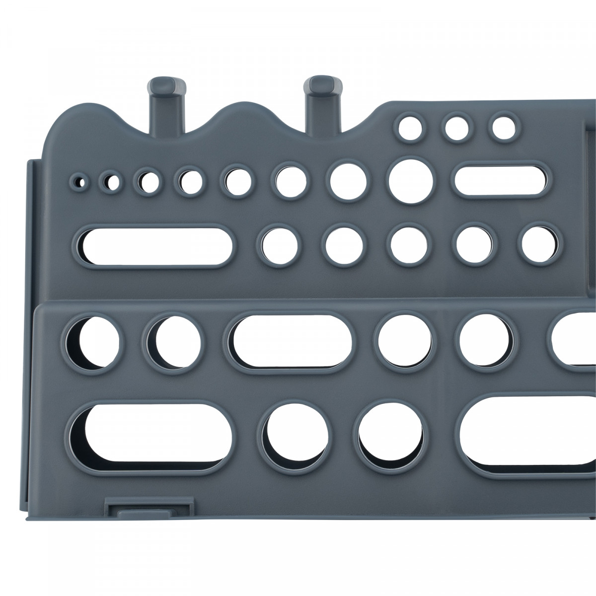 - Большая длина 625 мм и индивидуальные отверстия под инструменты — на полке можно разместить до 65 предметов.