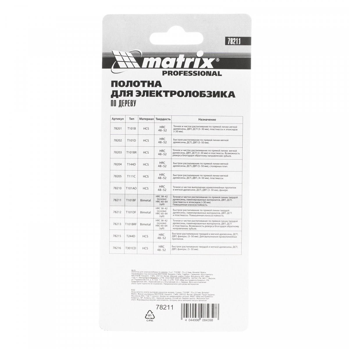 Полотна для электролобзика по дереву, 3 шт, T101BF, 75 x 2.5 мм, Bimetal Matrix Professional
