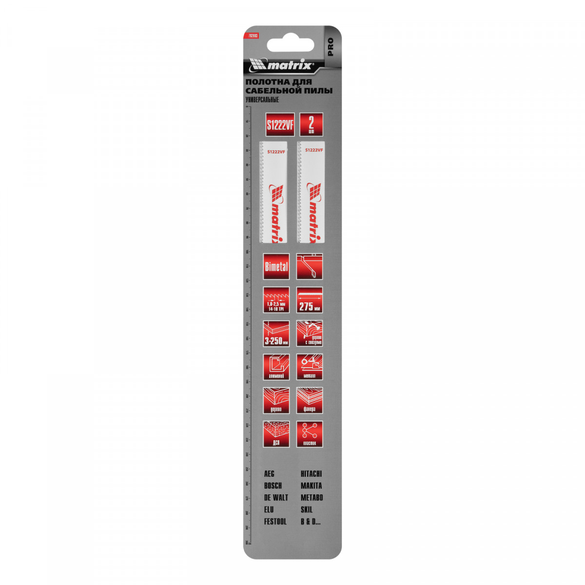 Полотна универсальные для сабельной пилы S1222VF, 275/1.8-2.5 мм, Bimetal, 2 шт, Pro Matrix