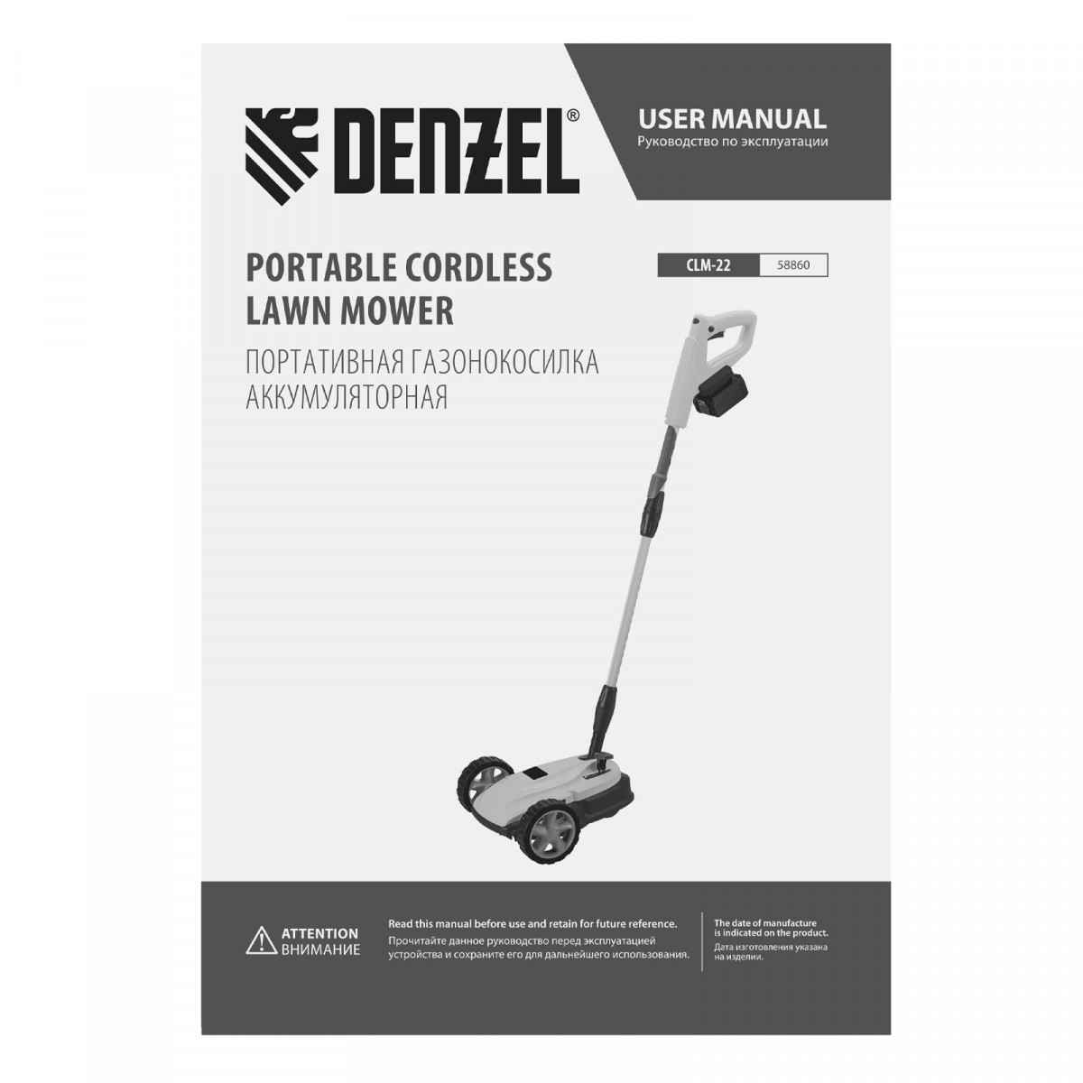 Портативная аккумуляторная газонокосилка CLM-22, Li-ion, 20В, 220 мм // Denzel