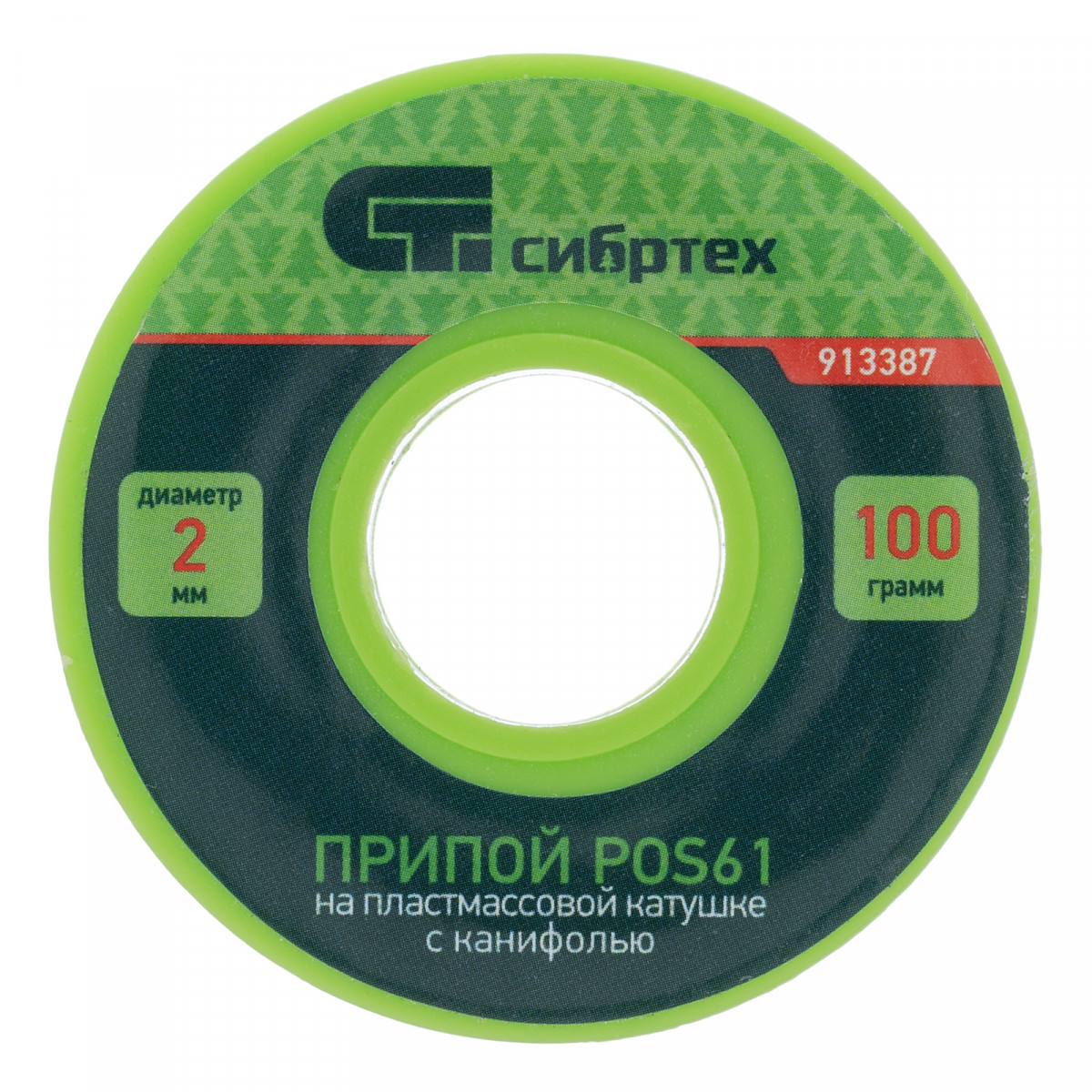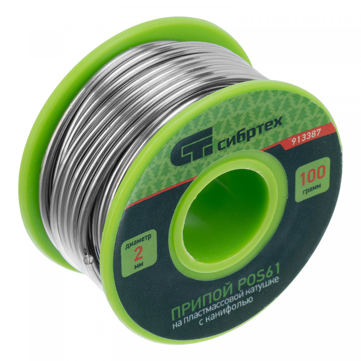 Припой с канифолью, D 2 мм, 100 г, POS61, на пластмассовой катушке Сибртех