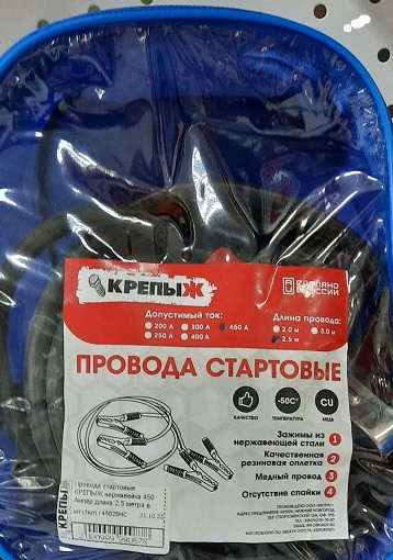 Стартовые провода КРЕПЫЖ предназначены для запуска двигателей легковых и грузовых автомобилей с разряженной аккумуляторной батареей при любых погодных условиях. Благодаря высокому качеству наши провода служат дольше, чем провода других производителей.