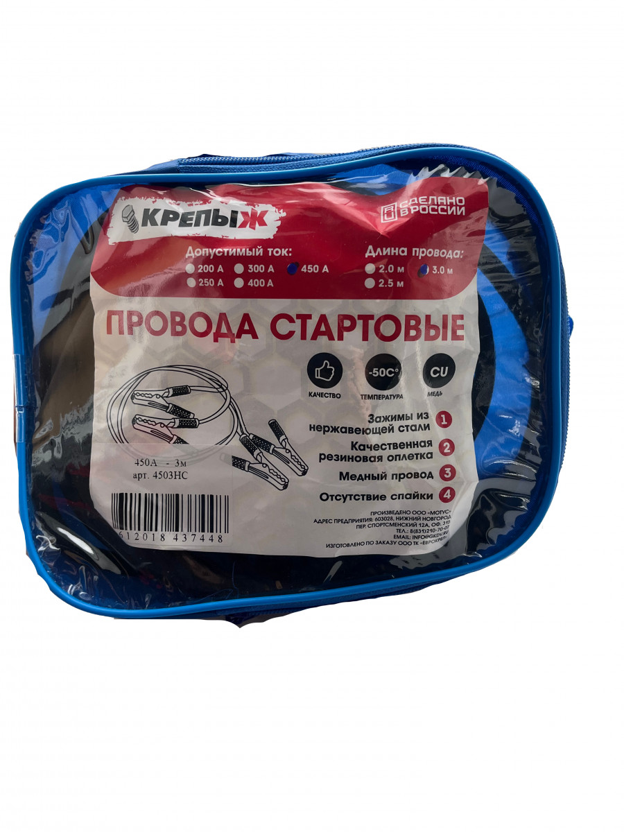 Провода стартовые КРЕПЫЖ нержавейка 450 Ампер длина 3,0 метра в сумке