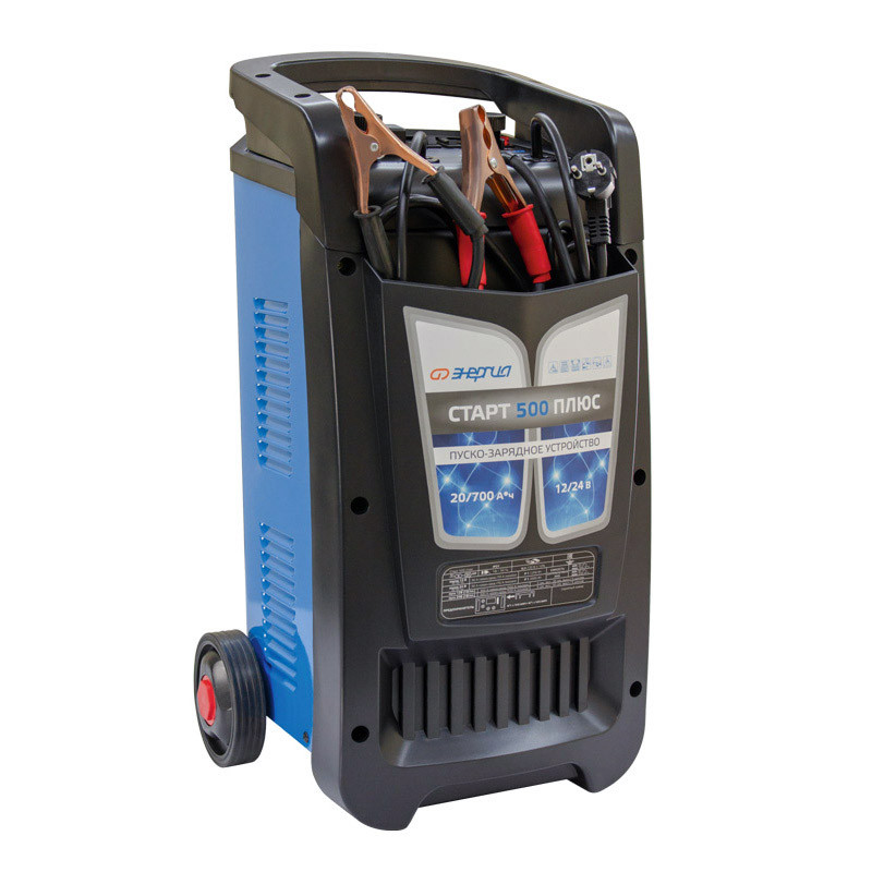 Пуско-зарядное устройство Энергия СТАРТ ПЛЮС 500 Е1702-0001 поможет эффективно зарядить все типы свинцово-кислотных аккумуляторных батарей и запустить двигатель автомобиля. В модели предусмотрена защита от перегрузки и перегрева, короткого замыкания и неправильной полярности. Для хранения проводов производитель оснастил устройство специальным карманом. Мобильность прибору обеспечивают удобные колеса. Дополнительные характеристики: Номинальная частота переменного тока, Гц 50;