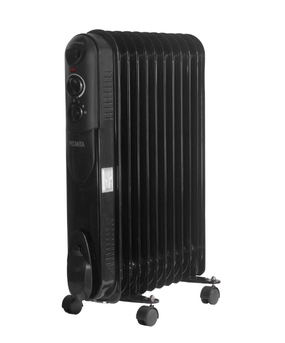 Мощный, надёжный, безопасный масляный радиатор чёрного цвета модели Ресанта ОМПТ-12НЧ предназначен для обогрева помещений площадью до 30 м². Он состоит за 11-ти металлических секций. Внутри прибора залито минеральное масло, нагреваемое ТЭНом, который расположен в нижней части корпуса. Конструкция позволяет быстро выходить на режим нагрева, равномерно распределять тепло и при этом не пересушивать воздух в помещении. Мощность масляного нагревателя составляет 2.5 кВт с возможностью выбора одного из трёх режимов нагрева: 1 – 1000 Вт, 2 – 1500 Вт и 3 – 2500 Вт.