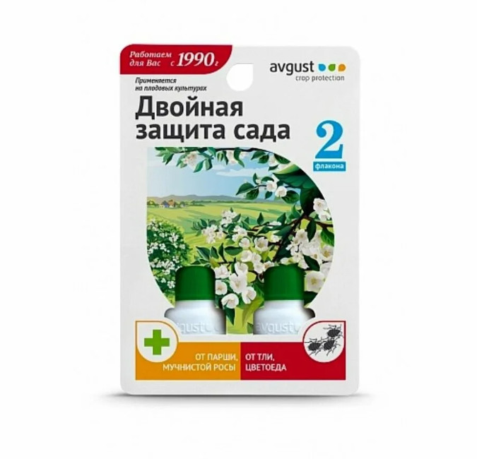 Комплекс препаратов от болезней и вредителей Раек 10 мл + Биотлин 9 мл. Серия препаратов от насекомых и болезней Двойная защита создана специально для комплексной обработки плодовых, ягодных, цветочных и декоративных культур. В каждой упаковке содержатся два наиболее эффективных препарата, один из которых предназначен для борьбы с вредителями, второй - для лечения и профилактики заболеваний растений. Набор для защиты растений от болезней способен предупредить и вылечить такие заболевания растений как мучнистая роса, парша. Эффективен от тли, клещей, яблонного цветоеда, садовых муравьев, листоверток, трипсов, белокрылки, цикадок и других насекомых.