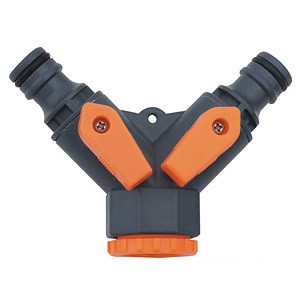 Разветвитель на кран двухканальный выполнен из высокопрочного пластика. Присоединительный размер ½" - ¾"