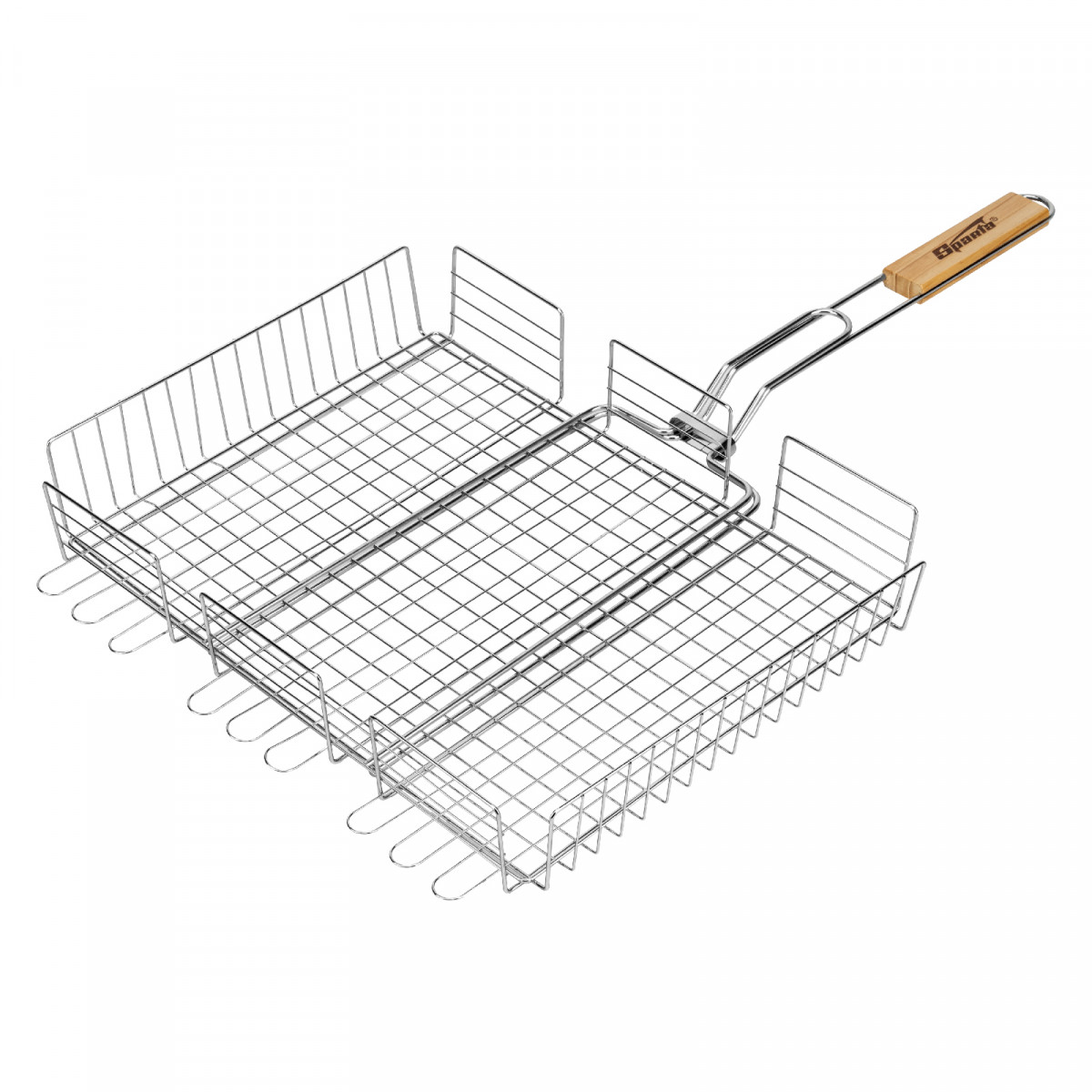 Объемная хромированная решетка-гриль Sparta 69561 размером 300 х 400 х 65 мм используется для удобного размещения продуктов и их приготовления на углях. С ее помощью мясо, рыба или овощи обжариваются равномерно с двух сторон, что позволяет получить вкусные блюда. За счет регулировки высоты решетки возможно приготовление продуктов любого размера без потери сока.