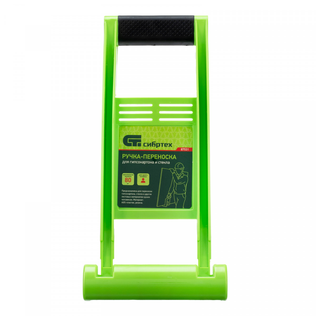 Ручка-переноска для гипсокартона и стекла Сибртех 87531 используется для перемещения вручную крупногабаритных гипсокартонных листов, фанеры и других листовых материалов в одиночку. Будет полезна во время строительных, ремонтных и погрузо-разгрузочных работ.