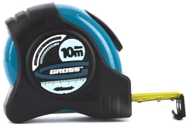 Рулетка 10мx25мм GROSS Schlagfest 31115 представляет собой карманный измерительный инструмент для профессионального использования. Изделие имеет функцию автостопа. Прорезиненный корпус из ABS-пластика не проскальзывает в ладони в процессе работы. Двухстороннее измерительное полотно рулетки имеет нейлоновое покрытие, которое обеспечивает защиту от истирания продлевая рабочий ресурс инструмента. Основание измерительного полотна оснащено подвижным, обрезиненным, магнитным зацепом True Zero (истинный ноль), который позволяет точно проводить измерения от нуля при внешних и внутренних замерах, а также производить фиксацию не только на ровных поверхностях, но и на трубах диаметром до 35 мм.