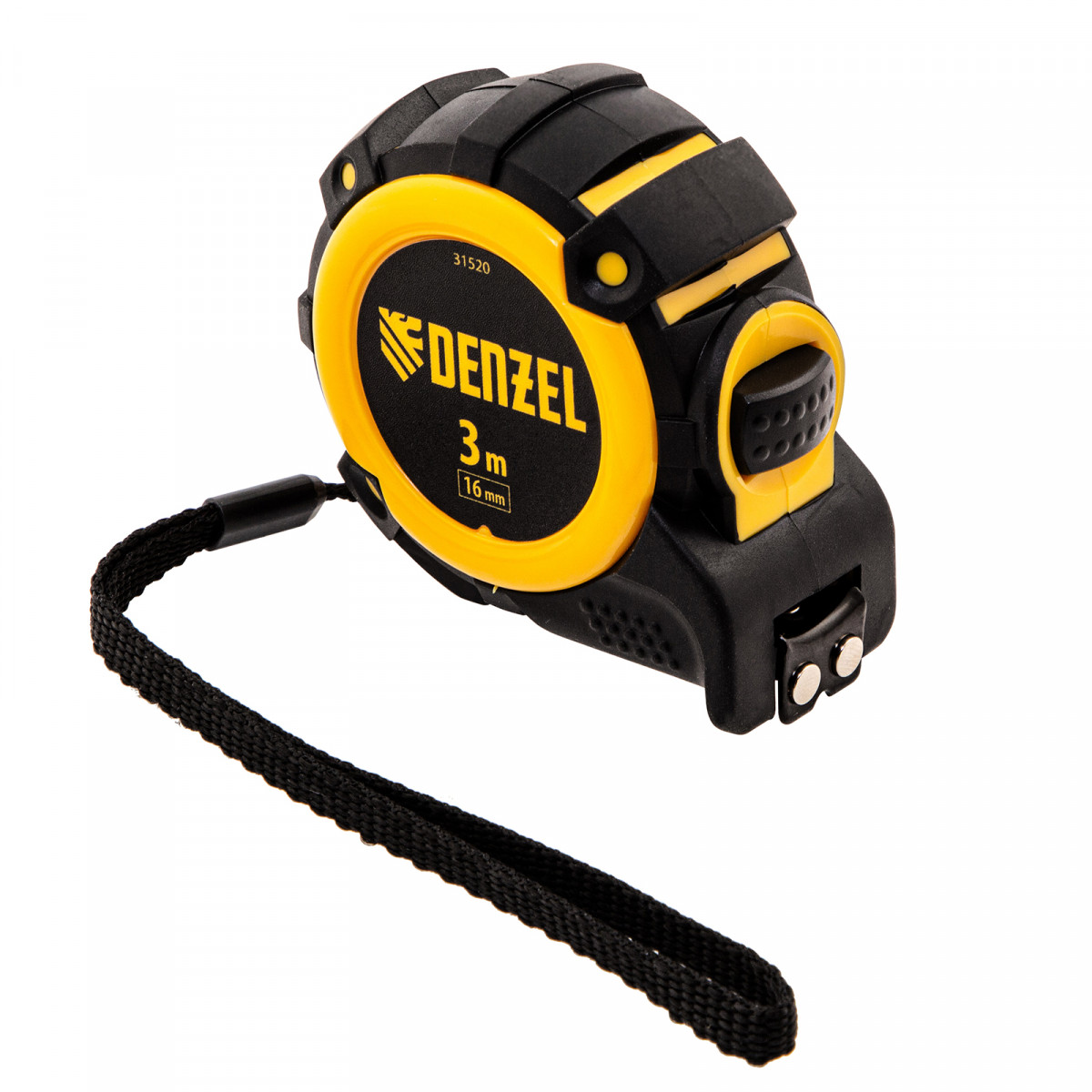 Рулетка 3м х 16мм, автоматич. фиксац., нейлон. покрытие, магнит. зацеп, двухстор. разметка Denzel