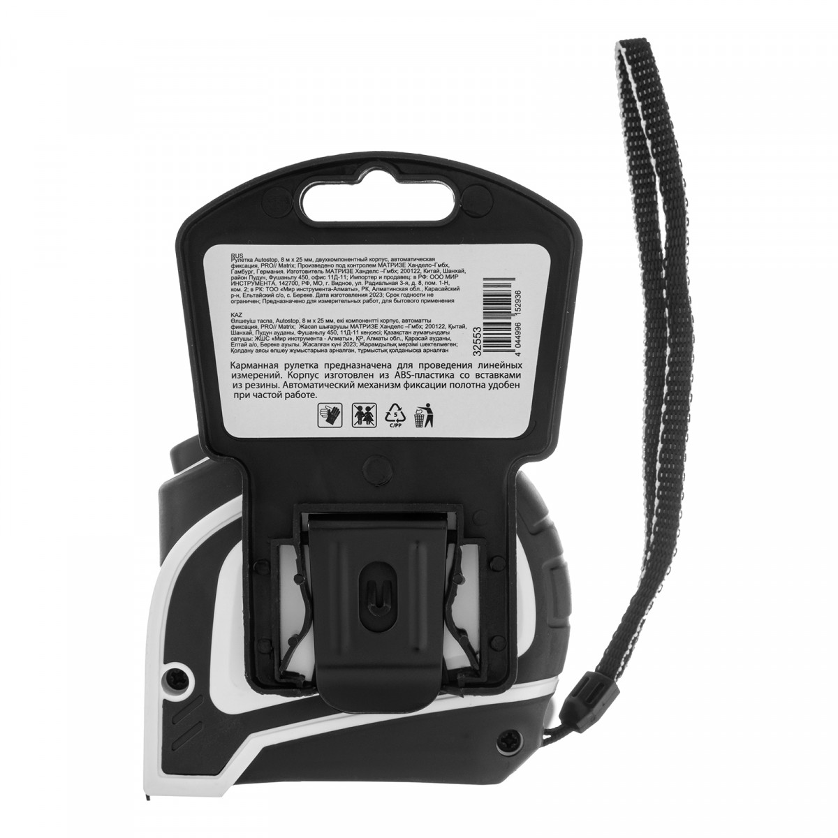 Рулетка Autostop,8 м х 25 мм,двухкомпонентный корпус,автоматическая фиксация,Pro Matrix