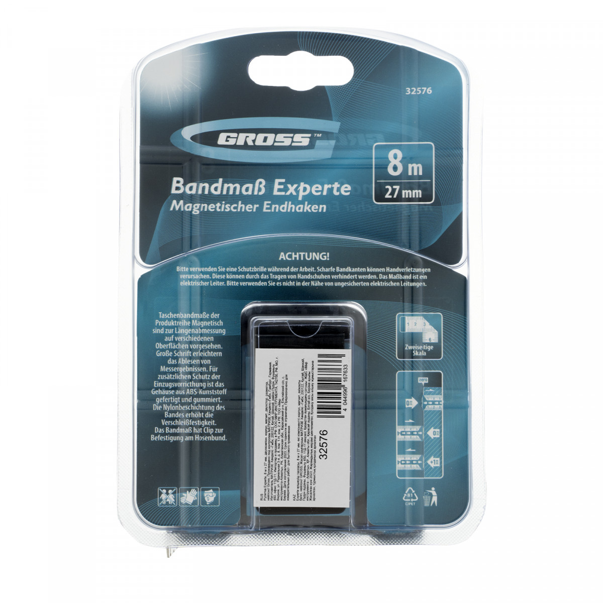 Рулетка Experte,8 м x 27 мм,двухкомпонентный корпус,магнит,двухсторонняя разметка,нейлон Gross