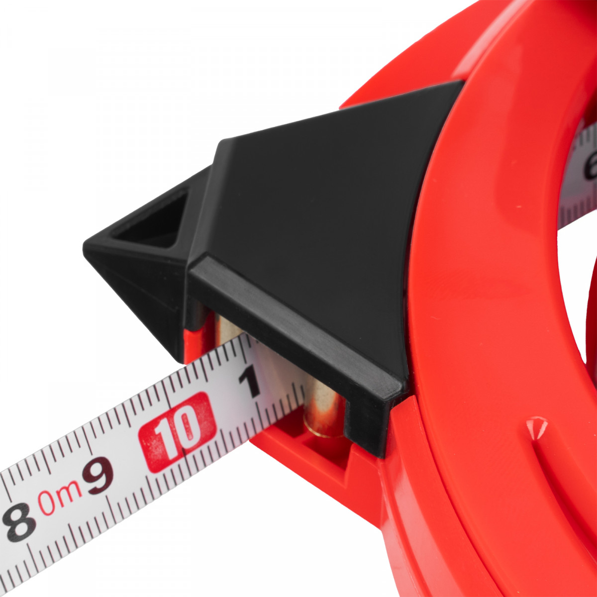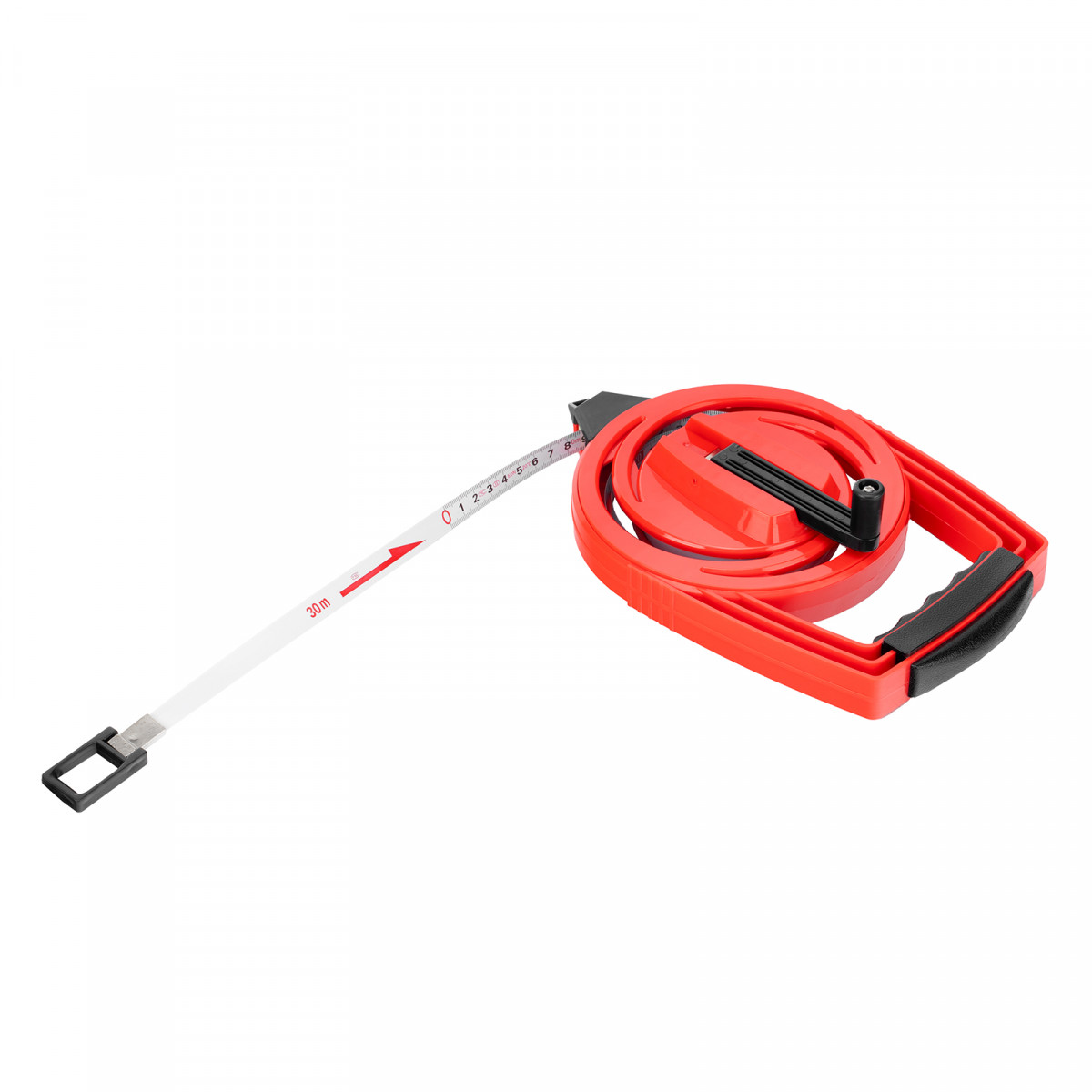 - Удобное проведение длинномерных измерений — наконечник в нижней части надежно фиксирует рулетку в почве.