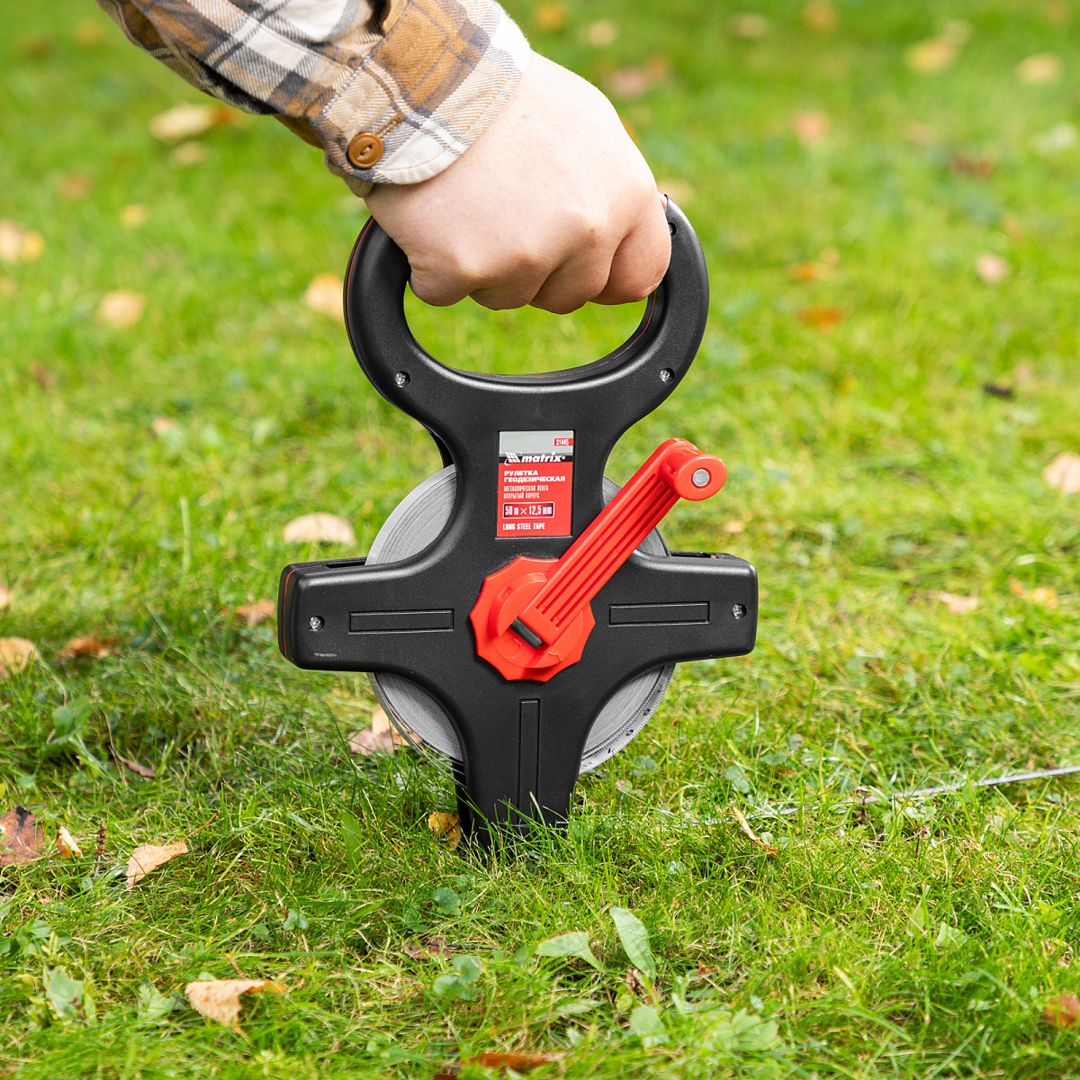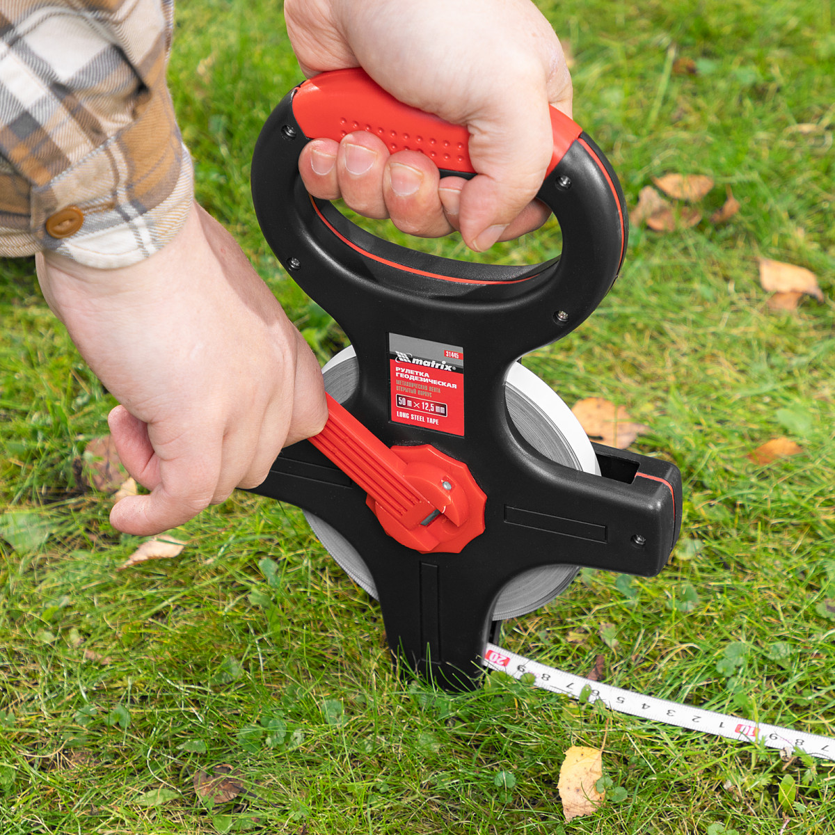 Геодезическая рулетка Matrix 31445 в открытом корпусе, с металлической лентой длиной 50 м и шириной 12,5 мм, применяется для выполнения замеров на участках большой площади. Рулетка надежно фиксируется в почве при помощи заостренного наконечника, что облегчает выполнение длинномерных измерений. Инструмент будет полезен во время проведения проведении строительных работ, геодезических и картографических обследований, обмеров земельных участков и дорог.