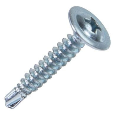 Саморез с полусферической головкой и напрессованной шайбой. Широко применяются при проведении отделочных работ, мебельном производстве, машинстроении. Имеют резьбу с мелким шагом и наконечник сверло (способность крепления листового металла до 2,0 мм без предварительного засверливания). Оцинкованное покрытие предохраняет саморез от коррозии.