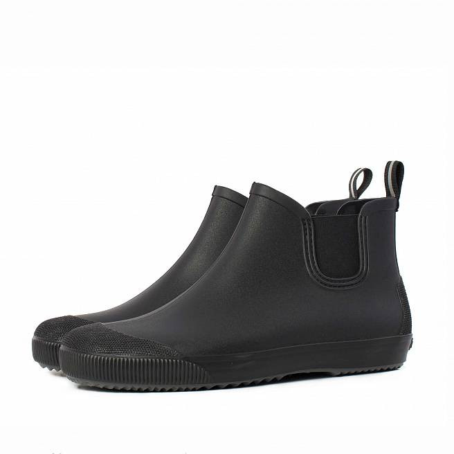 Мужские резиновые ботинки Nordman Beat выполнены из водонепроницаемого экологичного материала, имитирующего изделие из кожи. Изнутри в ботинок встроена эластичная вставка и специальная петелька для удобства обувания.