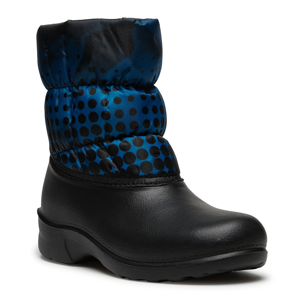 Полусапожки женские Дюна из зимней эластичной полимерной композиции EVA DU-Care. Верхняя часть выполнена из текстиля с водоотталкивающей пропиткой. Подкладка состоит из полиэфирного ворсового полотна, которое создаёт надёжный барьер для проникновения холодного воздуха. Воздушные пространства, которые образуются за счёт отстрочки с помощью резинки, создают барьер для проникновения холодного воздуха. Сноубутсы практичные, удобные и комфортные. Стильный авторский принт позволяет создать индивидуальный образ. Предназначены для повседневных прогулок в холодную погоду и для активного отдыха. Бережная стирка при температуре 30 градусов.