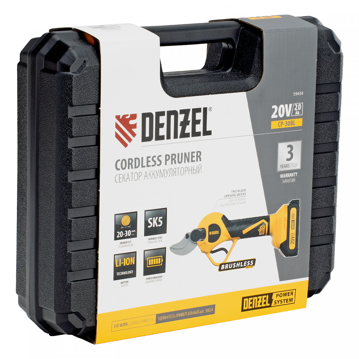Секатор аккумуляторный, бесщет., CP-30BL, Li-Ion, 20 В, лезвия SK5 // Denzel