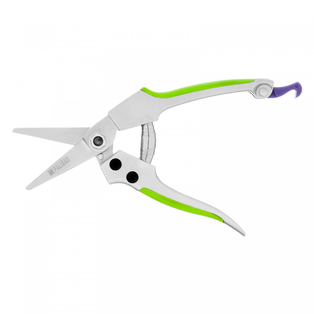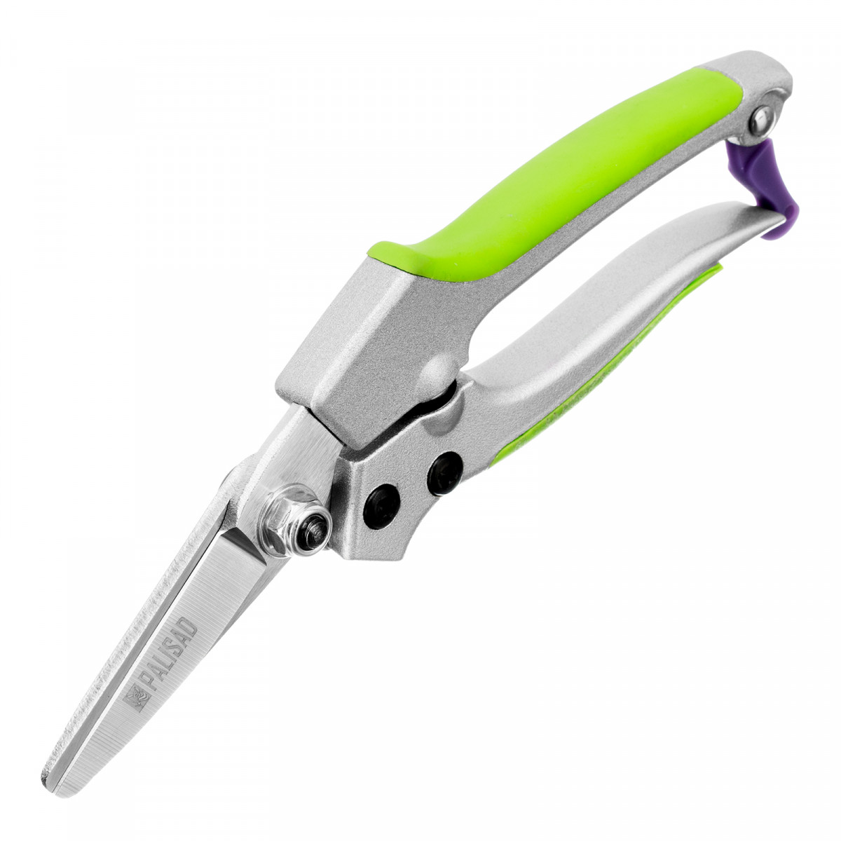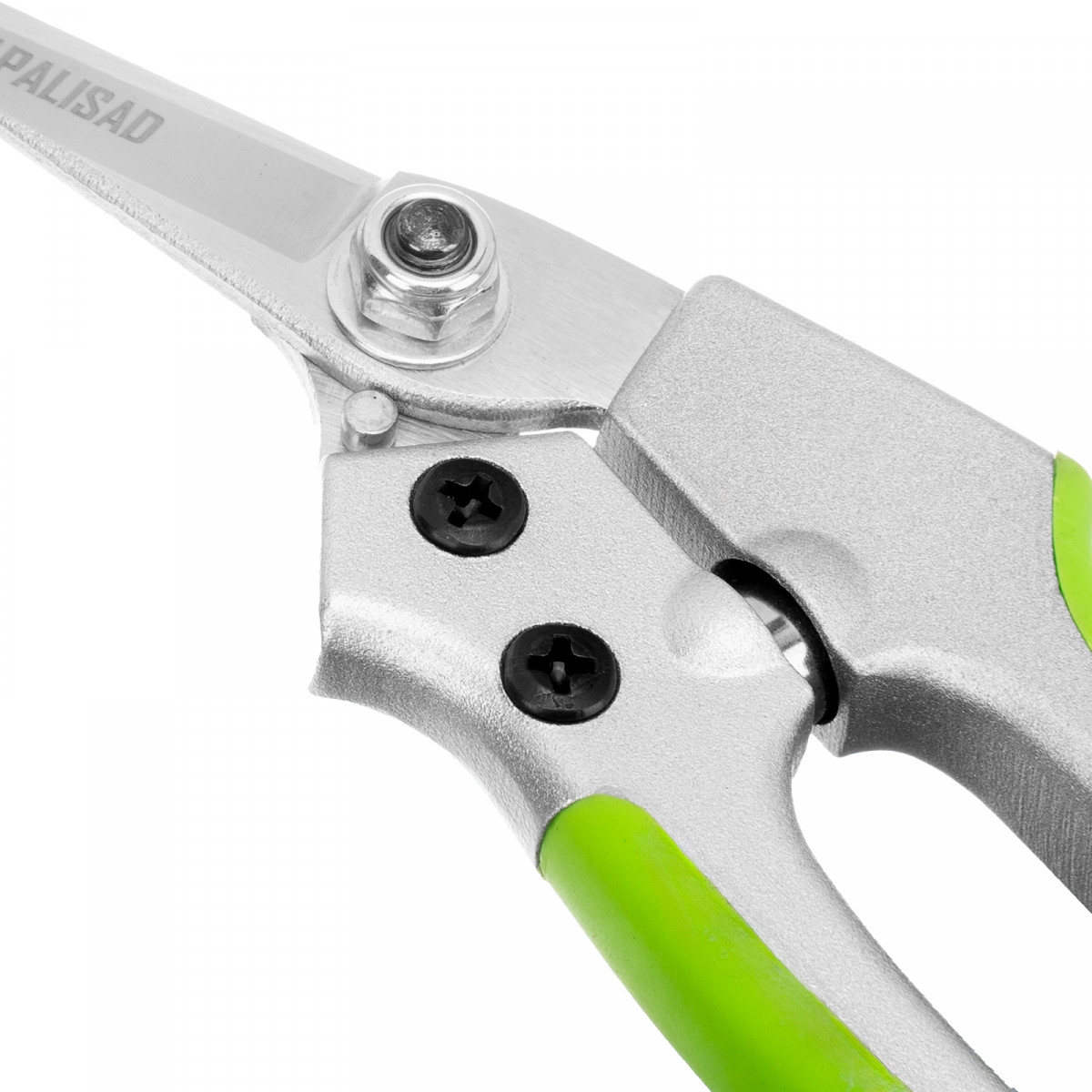 Цветочный секатор Palisad 60491 длиной 180 мм, с металлическими обрезиненными рукоятками, будет полезен дома, на даче, в саду и огороде. При помощи расположенных в параллельных плоскостях лезвий быстро и аккуратно срезает молодые побеги и стебли толщиной до 10 мм. Подходит для оформления крон бонсай и создания топиариев. Пригодится также в домашнем хозяйстве — им удобно резать картон, бумагу, ткань, подвязочный материал. Режущие кромки с прецизионной заточкой обеспечивают легкость реза, плотность смыкания лезвий регулируется при помощи крепежного винта.