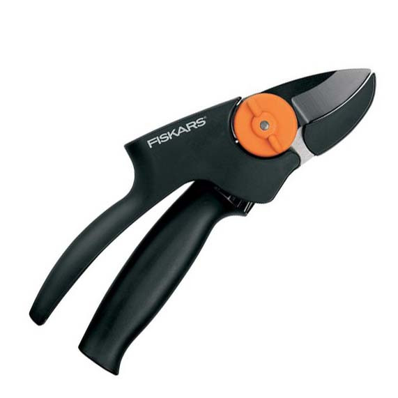 Контактный секатор с силовым приводом P91 Fiskars, артикул: 111510, - это миниатюрный секатор для рук среднего и малого размера. Идеально подойдет для женщин. Инструмент имеет уникальный механизм усиления режущего воздействия. Верхнее лезвие сделано из специальной закаленной стали (Cr, Mo, V) с антифрикционным тефлоновым покрытием.