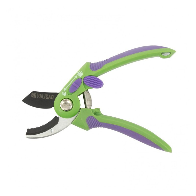 Благодаря пластиковым обрезиненным рукояткам инструмент имеет малый вес - не устает рука при долгой работе. Регулятор хвата "большая-малая рука" делает инструмент более универсальным. Удобный замок надежно фиксирует лезвия в закрытом состоянии.