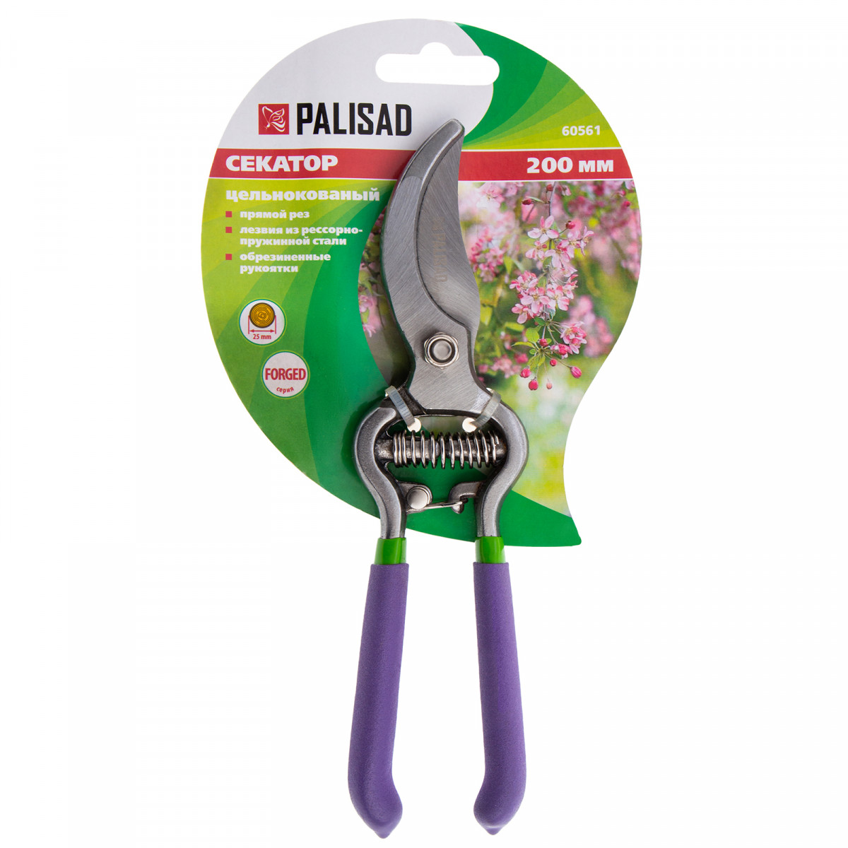 Секатор прямого реза Palisad 60561 общей длиной 200 мм, с обрезиненными рукоятками, используется для обрезки живых веток диаметром до 25 мм. Движущиеся в параллельных плоскостях лезвия производят гладкий и ровный срез, сводя к минимуму потерю сока растением. Регулировочный винт позволяет отрегулировать плотность смыкания лезвий. Секатор пригодится для работы на даче и в саду.