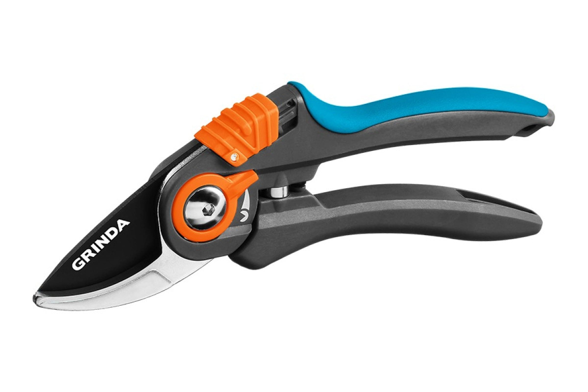 Плоскостной секатор Grinda PRO Line 423459 используется для обрезки веток и стеблей растений.