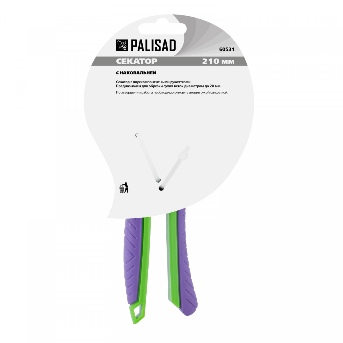 Секатор с наковальней, 210 мм, шестеренный привод, двухкомпонентные рукоятки, Palisad