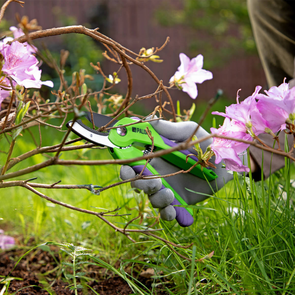 - Удобная обрезка — рифленая поверхность наковальни обеспечивает надежную фиксацию веток, в том числе гладких.