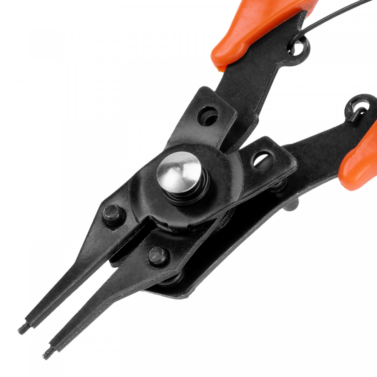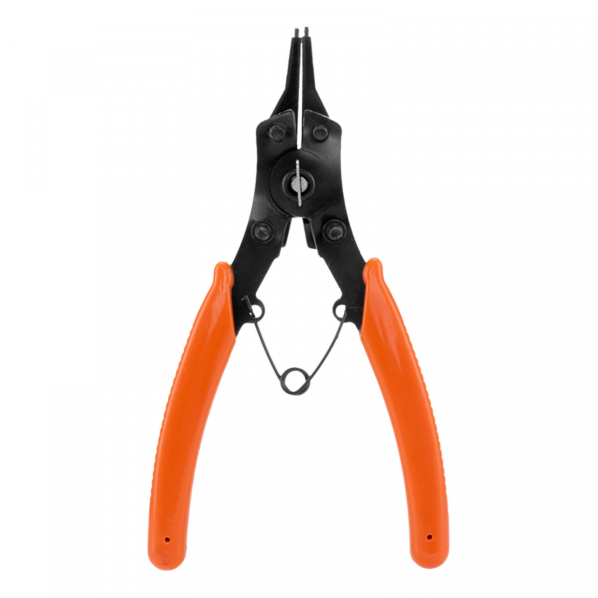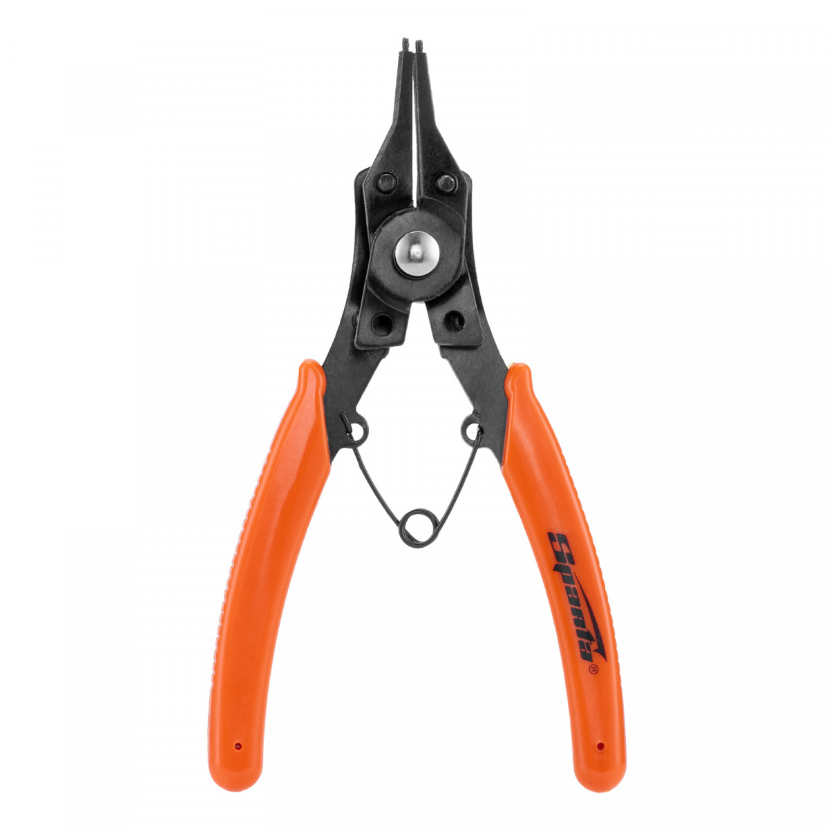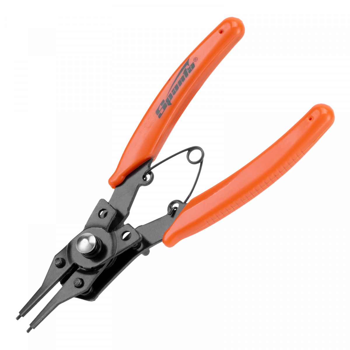 Универсальный съемник Sparta 183505 длиной 150 мм, с насадками, избавляет от необходимости приобретать отдельные инструменты для внешних и внутренних стопорных колец. В зависимости от способа установки насадки съемник способен работать как на сжим, так и на разжим. Используется для колец с отверстиями. Будет полезен в ремонтной мастерской, дома или в гараже.