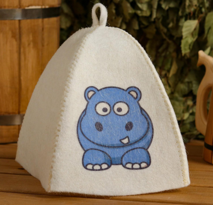 Шапка для бани детская Бегемот с принтом белая 5312292