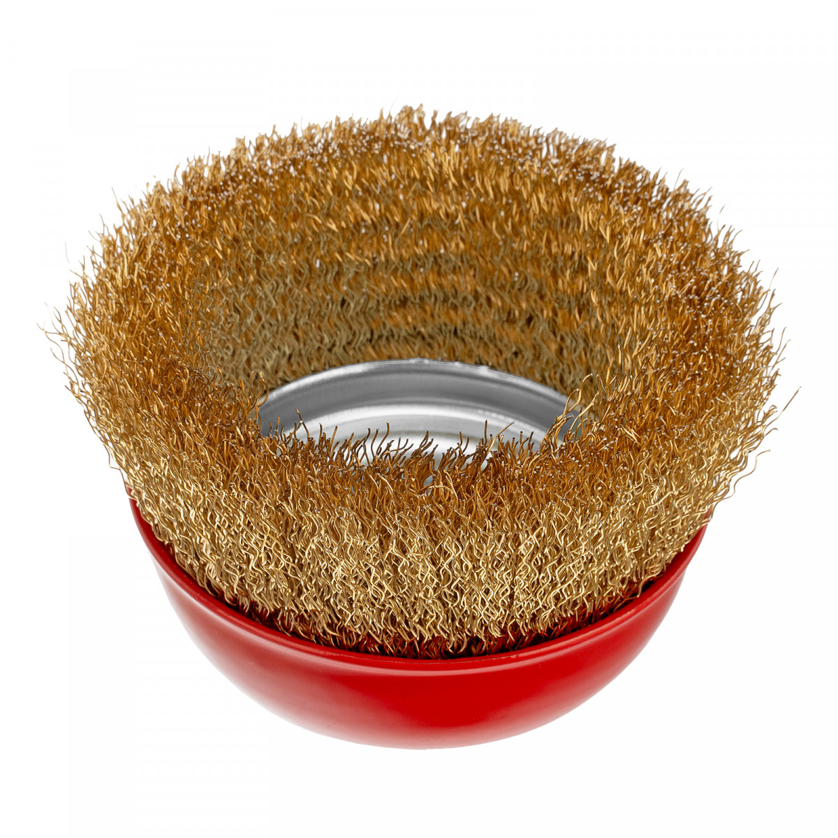Щетка для УШМ, 100 мм, М14, "чашка", латунированная витая проволока Matrix