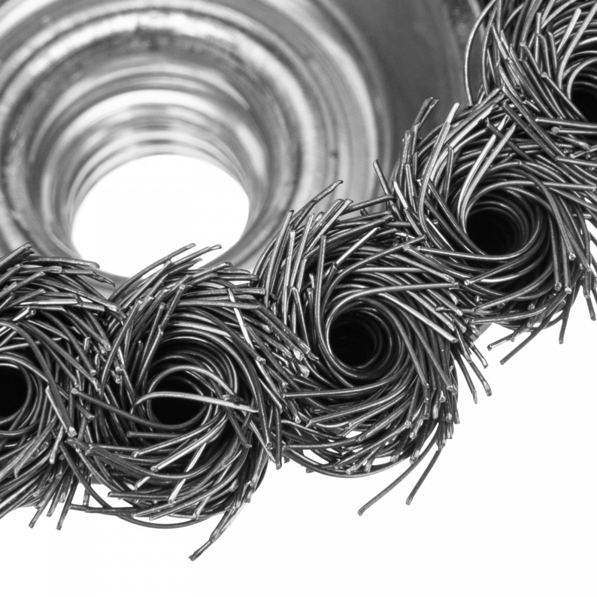 - Прочность и долговечность — щетина из крученой стальной проволоки выдерживает значительные нагрузки.