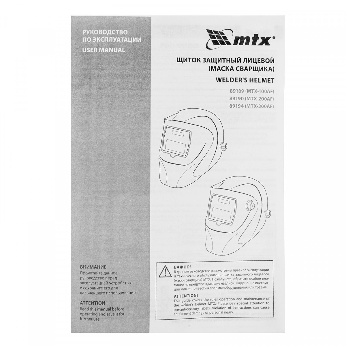 Щиток защитный лицевой (маска сварщика) MTX-300AF, размер см. окна 93х43, DIN 4/9-13 MTX