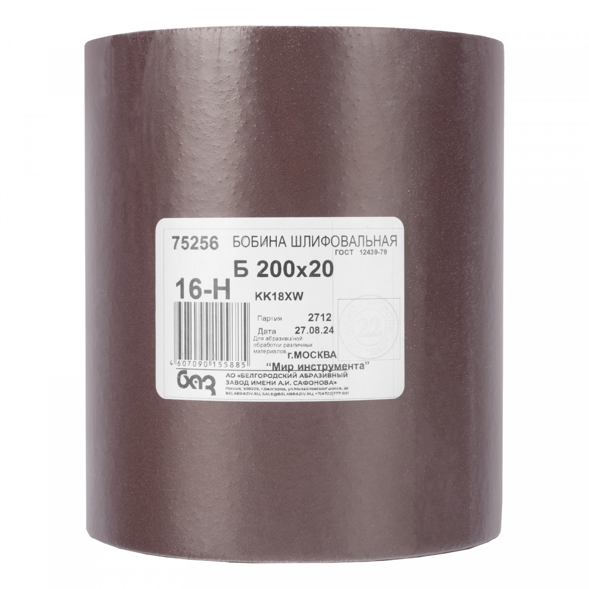 Шкурка на тканевой основе, KK18X W, зернистость 16Н(Р 80) бобина 200 мм х 20 м, водостойкая, "БАЗ"