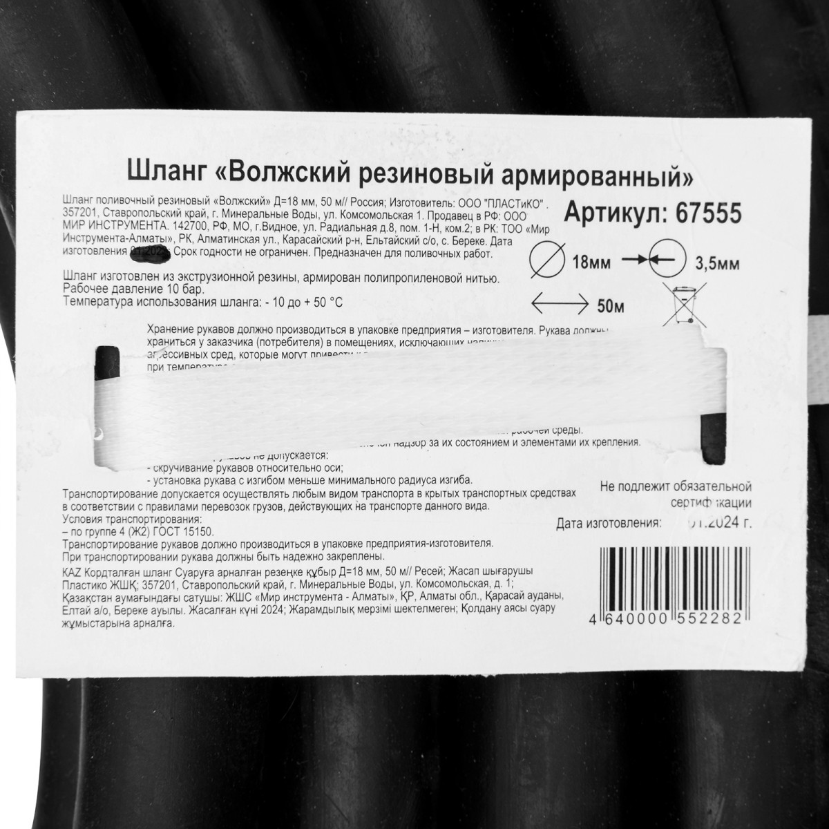Шланг кордовый, рукав поливочный резиновый, D 18 мм, 50 м